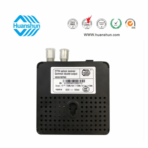 普通型雙輸出光接收機(jī) | HSGS10076/2 | 1290~1565nm接收,-5~-15dBm/RF 2×72dBuv恒定輸出,外接90~255V 5V 0.5A電源適配器 |