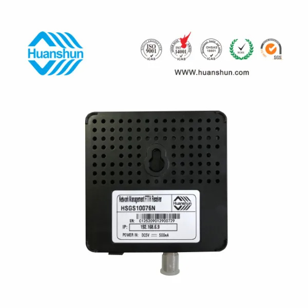 網(wǎng)管型 FTTH光接收機 | HSGS10076N | 1290~1565nm接收,-2~-12dBm/RFMD 82dBuv恒定輸出,(RJ45標準網(wǎng)口),外置90~255V 5V 0.5A電源適配器 |