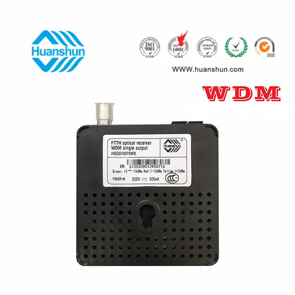 環(huán)順的HSGS10076W光接收機(jī)是專為CATV網(wǎng)絡(luò)的FTTH 應(yīng)用而設(shè)計的入戶型光接收機(jī)。具有結(jié)構(gòu)小巧緊湊、式樣美觀、 應(yīng)用方便等 特點,在高達(dá)1000Mhz的帶寬下能夠提供穩(wěn)定的輸出電平和優(yōu)異的性能指標(biāo),具有極寬的光功率工作范圍。
