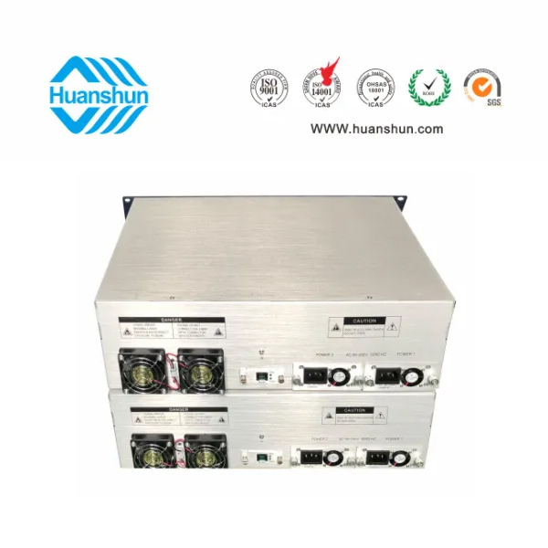 大功率光纖放大器EYDFA | YGF1564-16C | 19 " 2U/3U標(biāo)準(zhǔn)機(jī)箱,-5 ~ +10 d Bm輸入,64路標(biāo)稱規(guī)格(16、17、18、19、20、21dBm)放大輸出,并支持下調(diào)-2dB,安全連接模式,NF ≤ 5dB(0dBm時(shí));內(nèi)置FWDM合波器,插播損耗 ≤ 1dB;雙模塊熱插撥電源,AC90 ~ 255V或DC-48V供電,RJ45標(biāo)準(zhǔn)網(wǎng)管(支持SNMP、WEB) |