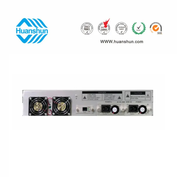 大功率光纖放大器 | YGF1504-16 | 19 " 2U標(biāo)準(zhǔn)機(jī)箱,-5 ~ +10 d Bm輸入,4路標(biāo)稱規(guī)格(16、17、18、19、20、21、22、23、24dBm)放大輸出,并支持下調(diào)-2dB,安全連接模式,NF ≤ 5dB(0dBm時(shí));內(nèi)置FWDM合波器,插播損耗 ≤ 1dB;雙模塊熱插撥電源,AC90 ~ 255V或DC-48V供電,RJ45標(biāo)準(zhǔn)網(wǎng)管(支持SNMP、WEB) |