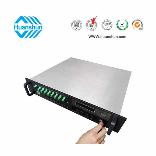 隨著廣電全光網(wǎng)傳輸光纖到戶方案(FTTH)的實(shí)施,當(dāng)EDFA在CATV系統(tǒng)中用作級(jí)聯(lián)放大時(shí),系統(tǒng)C/N會(huì)嚴(yán)重劣化,因此要求EDFA具有高的飽和輸出功率、低的失真,而鉺鐿共摻(EYDFA)雙包層大功率光纖放大器滿足這一需求,以適應(yīng)當(dāng)前FTTH和FTTB網(wǎng)絡(luò)的需求。FTTH除傳輸1550nm CATV光信號(hào)的同時(shí),還需E/GPON DATA光信號(hào)傳輸。