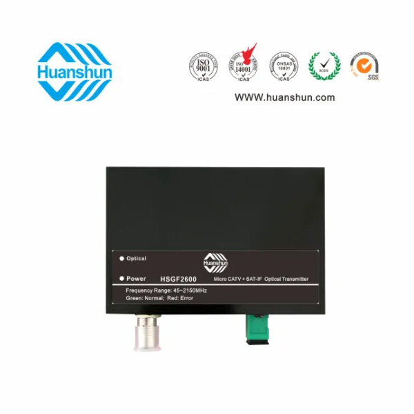 CATV&SAT-IF光發(fā)送機 | HSGF2600-1302 | RF工作帶寬45~2150MHz,光輸出功率有2或3mW可選,型號后綴13代表1310nm波長,15則代表1550nm波長,最后2位數(shù)字02表示2mW,03則表示3mW,RF接口F型公制或英制(訂貨時說明),光輸出接口SC/APC |