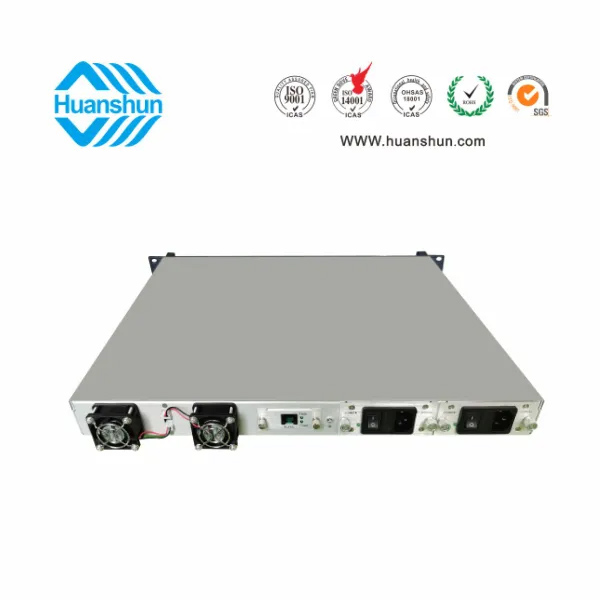 大功率光纖放大器EYDFA | YGF1508-16C | 19 " 1U標準機箱,-5 ~ +10 d Bm輸入,8路標稱規(guī)格(16、17、18、19、20、21dBm)放大輸出,并支持下調(diào)-2dB,安全連接模式,NF ≤ 5dB(0dBm時);內(nèi)置FWDM合波器,插播損耗 ≤ 1dB;雙模塊熱插撥電源,AC90 ~ 255V或DC-48V供電,RJ45標準網(wǎng)管(支持SNMP、WEB) |