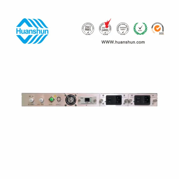直調(diào)制光發(fā)射機(jī) | HS 15107D | RF80 ± 5 dBuv 輸入,ITU 1550nm, ≥ 7、10 dBm 輸出;1U標(biāo)準(zhǔn)機(jī)箱,雙模塊熱插撥電源,AC90 ~ 255V或DC-48V供電,RJ45標(biāo)準(zhǔn)網(wǎng)管(支持SNMP、WEB) |